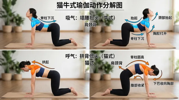 1. 猫牛式:唤醒脊柱的原始韵律